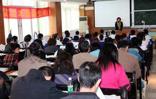 下午,刘志明校长就附校开展生本教育实验的情况向研习班成员们作了经验介绍。刘校长精辟的理论、深邃的思索讲述了附校进行生本实验的成绩。“生本教育”的课堂模式是怎样的?如何处理“生本教育”与统考的关系?是否会增加教师的工作量?如何使教师、学生和家长接受?接下来进行语文、数学和英语科座谈交流上,附校一线老师对这些问题进行了回答,使来宾们更加明确了生本教育的内涵,坚定了走生本之路的信心。