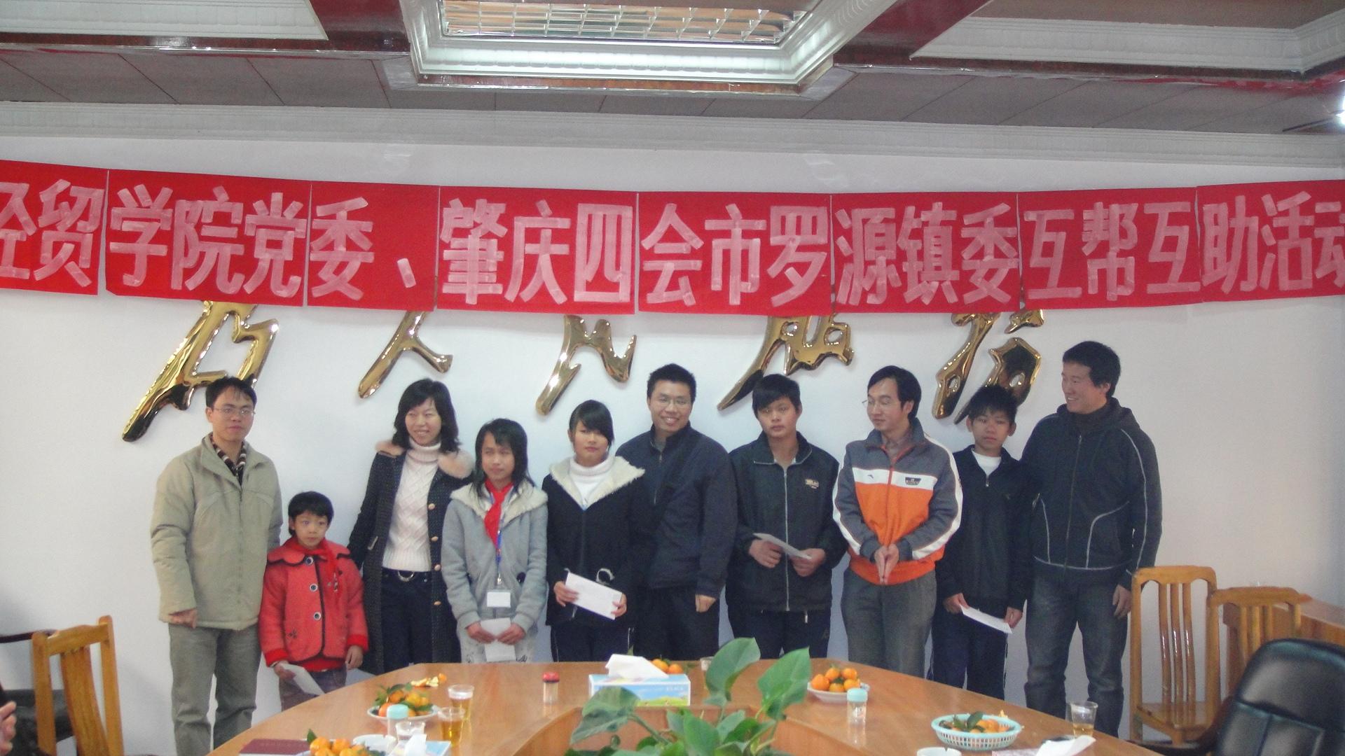 会后,双方举行了简单的助学金颁发仪式。经贸学院各教工党支部书记给石寨村、洞心村、红旗村、铁坑村和罗源村五位贫困生颁发了共5000元的助学金,并勉励他们要自强不息,克服困难,好好学习。