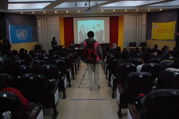 19日上午,备受瞩目的2009年广外模拟联合国大会(GWMUN)开幕式暨初赛于财经学院教学楼105水上投影厅上演。我校党委研究生工作部部长敖湘晖、英文学院党委书记何洪亮、商英学院副院长朱文忠出席并为开幕式致辞。经过持续两天的激烈竞争,优秀立场文件奖、杰出团队奖、最佳代表奖等奖项终于尘埃落定,荣获个人奖的选手则直接晋级明年5月举行的决赛,并参加更为系统的培训,最终决出4名选手代表我校参加2010年中国模拟联合国大会(CNMUN)。