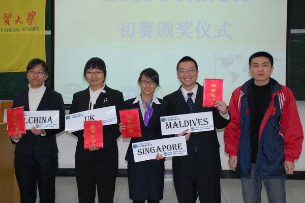 低年级组: Columbia 吴昊(英文学院09级本科), Maldives 谭哲(商英学院09级本科), Mexico 周嘉佳(商英学院08级本科), Sudan 陈园婉(商英学院08级本科)