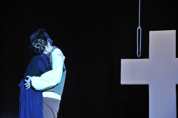 《The Crucible》从道具到音乐,从服装到台词,这场演出透着浓而诡异的宗教色彩。开始时,阴森恐怖的布景,黑白的色调,沉闷的舞台气氛,配以黑衣白面人诡异的舞蹈,使得台下观众无不毛骨悚然。镇上的孩子纷纷病倒,人们束手无策,女巫作祟之说蔓延。女主角Abigail因为爱着男主角John,不惜设计陷害他的妻子,而John却因为另有隐情无法揭穿Abigail的诡计。几番挣扎后,他终于选择说出真相,救出妻子,自己走向绞刑架。