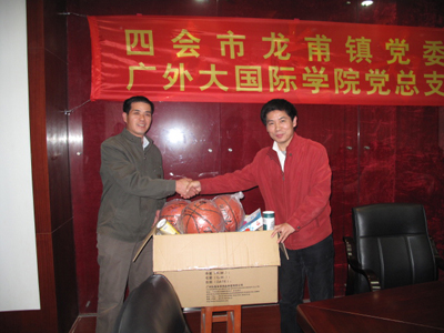 座谈会结束后,国际学院党总支副书记林茂辉和教工党支部书记魏辉良代表教工党支部分别向龙甫镇白石塘村困难群众送上慰问金和白石塘小学捐赠运动器材。