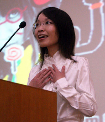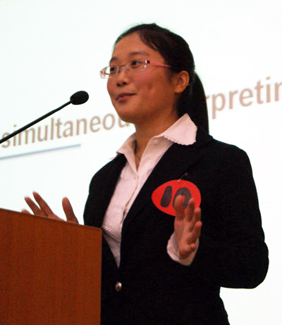 陈燕菲的《Tomorrow is the Big Day》以一通电话开头,利用倒叙手法为观众带来了一个爱与谎言的报仇故事。扣人心弦的故事情节,流畅自然的口语表达和丰富跌宕的情感变化,将观众一步步领入自己的故事之中,搏得了在场观众的阵阵掌声。邵贤婷《Profits of Education》引用大量实例,充分论证了教育给我们带来的益处。焦艺夏的《Light a Candle for you Life》从自己的亲身经历谈起,说明了保持良好心情的重要性,进而引出主题“Laughter is the best medicine”,结构清楚,论点突出,论据充足。参赛的4篇报刊特写文章,模仿新闻联播的形式,将其采访和搜集到的资料制作成视频资料,新颖生动,引人入胜。李月珊《Here come the Pet Groomers》介绍了新型宠物美容师,轻松有趣;何小敏的《One hundred yuan in 1989 VS one hundred yuan in 2009》通过对学校的保安、清洁人员以及学生等人的采访调查,阐述了中国经济虽持续增长,但是贫富差距大的现象仍十分严重的深刻社会问题。