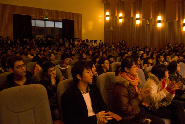 本网讯 12月16日晚上8点,由艺术学院主办的动漫钢琴主题多媒体视听音乐会在南校区艺术学院小剧场精彩上演。出席的嘉宾有艺术学院党总支书记车小真、音乐系主任王蓓、公共音乐系主任罗金燕。艺术学院07钢琴专业学生吴依琳、高先腾、王雨溪和古婵君联手为观众带来了一场动漫音乐的饕餮盛宴。
