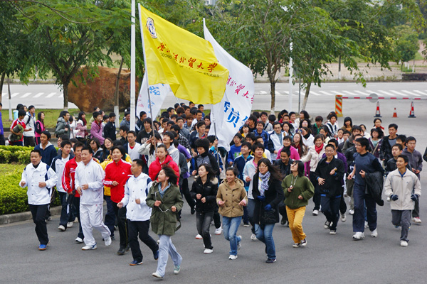 本网讯 12月17日下午3:00,广外第三届“阳光体育冬季长跑活动”启动仪式在南校区田径场举行,共有两千多名广外学生参加此次长跑。副校长仲伟合、体育部主任林少娜、体育部全体教师出席了启动仪式。这是我校为落实以“阳光体育与全民健身同行”为主题的“第三届亿万学生阳光体育长跑”而举行的活动。