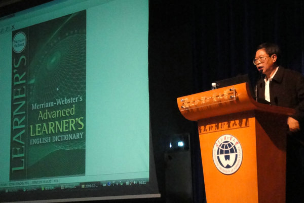 本网讯 12月10日下午,著名词典学教授源可乐在六教报告厅为英文学院09级的同学带来了一场关于词典的专题讲座。讲座旨在帮助同学们系统了解字典这一最常用的学习工具,并带领大家走出一些认识和使用上的误区。