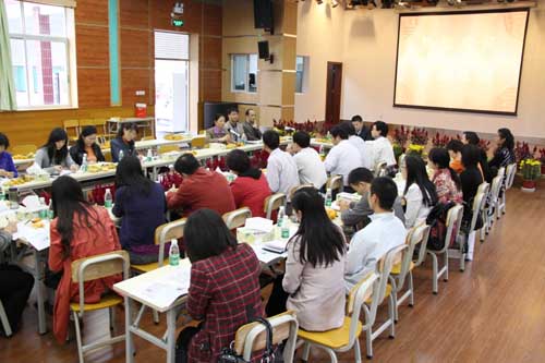本网讯 12月10日,江苏无锡北塘区教育局组织区内的梨庄实验小学,五爱小学,风翔实验学校,盛岸实验小学,积余实验学校和北山中学等学校领导和老师一行30多人到附校观摩生本高效课堂和交流研讨。在学生与来宾挤满一室的课堂里,生本气氛浓厚令来宾们叹服,来宾们给予了很高评价。广州市特级教师协会和肇庆四会东城中学校长与教师也前来观摩。
