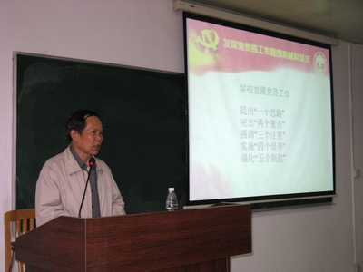 讲座开始前,邱月生首先肯定了我院党委近几年所取得的成绩,指出学院在党政高度重视的基础上,开展系列的支委培训很及时,也很有必要。接着,邱月生以“发展党员的工作方针和原则”为主题,详细阐述了大学党委在发展党员工作时明确提出的“一个思路、两个重点、三个注重、四个培养、五个到位”的具体内容。邱月生结合本学期大学党委颁发的五个党建文件,把发展党员的过程归纳为四个阶段和二十四个程序,必须认真准备和报送十三种材料,要求支部委员必须详细了解和掌握每个阶段相应的程序和相应的材料。邱月生强调,发展党员要着重把好“五个关”,分别是确定入党积极分子关、入党积极分子培养关、确定发展对象关、接收预备党员关以及预备党员培养、考察、转正关。