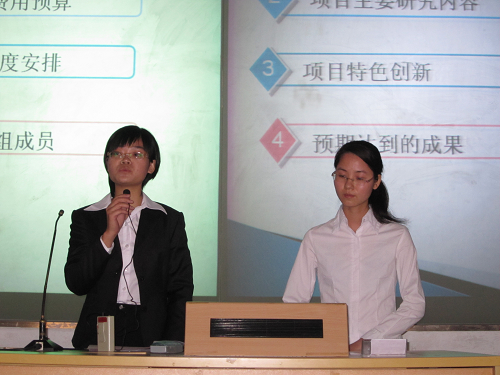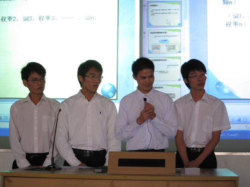 下午2:30,第三届“学生学术项目申报大赛”答辩会在教学楼E204举行,出席本次大赛的评委和嘉宾有信息学院院长姜灵敏,副院长蒋盛益,各系主任以及06至09级辅导员。共有7个队伍参加答辩,最终角逐出三个一等奖。