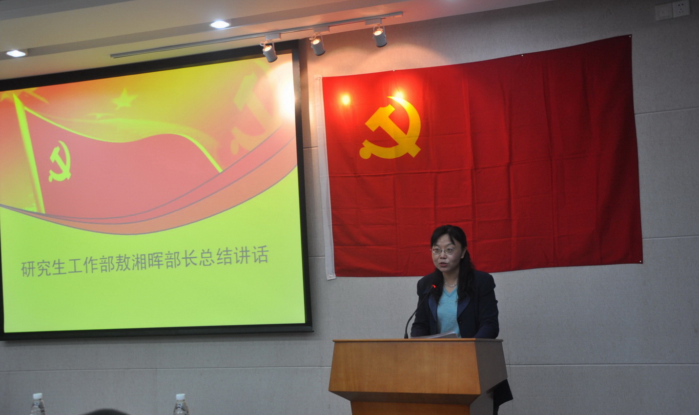 研究生会党支部党员代表俎俊鸽发言。她结合研究生会的工作实际谈了个人体会,并号召全体党员在校党委的领导下,增强研究生党员党性,提高战斗力和凝聚力,在群众中树立好党员形象,发挥模范带头作用。