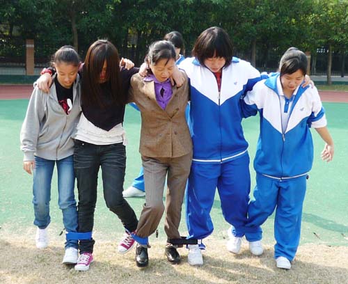 刘志明校长(中)与香港、附校同学一起参加5人6脚游戏活动