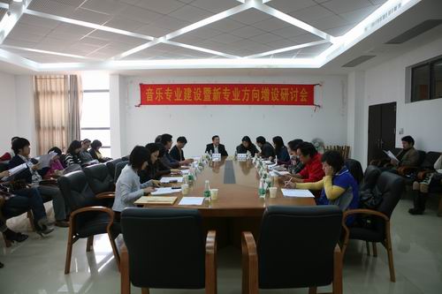 音乐系主任王蓓对音乐专业的总体情况进行了介绍,对拟新增的音乐教育方向作了重点发言,她从设置该方向的社会需求、学院师资队伍情况、课程设置特色,以及教学设备等方面阐述了新增专业方向的可行性与必要性。