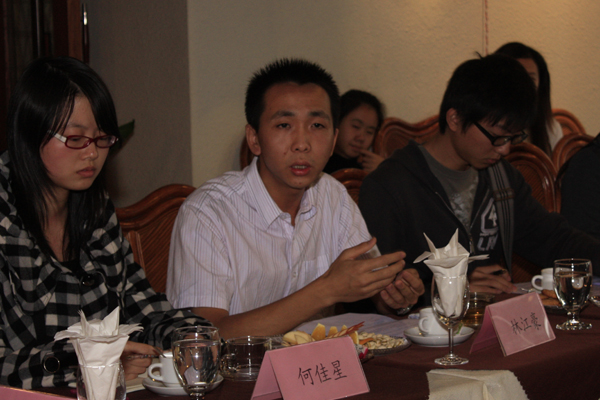而来自东语学院07级的龙成柳则提到了我校学生显得“浮躁”这一现象。他说,校内活动带有太多商业成分,学校又缺乏对学生在人文方面的培养。他结合自身学习经验,强调中文对我校小语种和英语专业学生的重要性,建议学校对非中文专业学生安排大学语文课程。