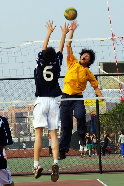 比赛在一开始就显示出了其激烈的程度,双反复往返较多。尽管是女子组的比赛,但仍不乏精彩的配合和漂亮的扣杀。商英7号程琪从后排插上,高高跃起一个漂亮的扣杀,信息球员还没来得及做出反应,皮球已经如炮弹般狠狠地砸在场内。紧接着,商英10队员谢凯欣在网前接二传一个重扣,球直接砸在信息球员身上,商英再获一分。如此精彩的得分也让场边的观众兴奋不已。随后,比赛形势开始向有利于商英的一边转变。信息进攻受阻,防守不力,失误也开始增多。商英则越打越顺,连拿几分,开始在比分上抛离对手。信息在打逆风球时显得有点急躁,始终未能止住颓势。很快她们就以19:25败下阵来。
