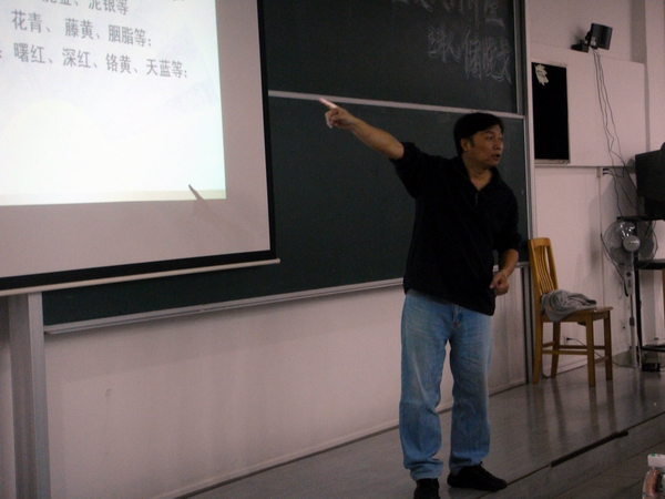 本网讯 11月24日晚上,凤凰论坛系列讲座之国画素描鉴赏入门在南校区F315隆重开幕。该讲座由学生团体联合会和书画协会联合举办,由艺术学院特聘美籍外教储晓戈主讲。华南师范大学、广东工业大学、广州美术学院和广东药学院四所高校书画协会的代表,以及本校其他社团的代表作为特邀嘉宾出席讲座。现场气氛活跃,反响热烈。