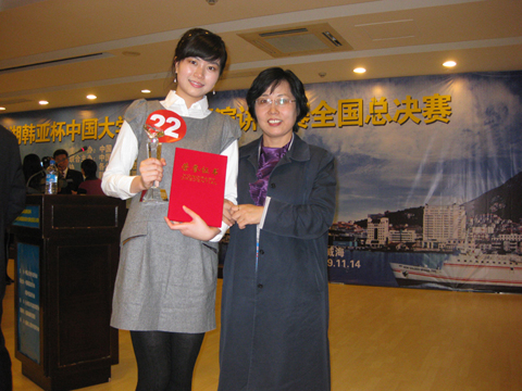 总决赛分为定题演讲,即兴演讲,常识回答三个环节。23名来自各大赛区的选手精彩的表演赢得全场掌声连连。我校选手黎桂芬更是表现出色,以自然流利的表达,标准的发音,十足的感染力打动了评委和观众,摘得了亚军,并且获得了免费赴韩国6个月语言研修的宝贵机会。