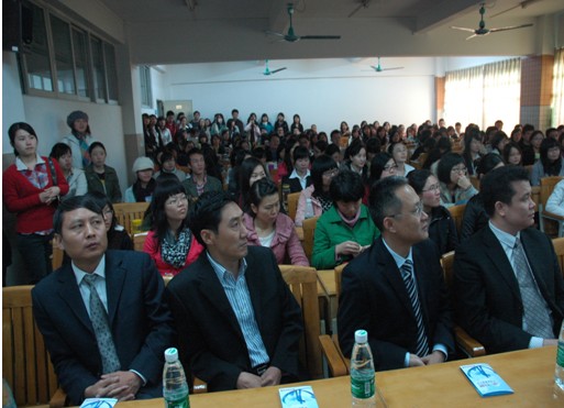 本网讯 11月23日下午,新华社团委书记邢英夫一行在新华社广东分社副社长凌广志的陪同下,来我校举行招聘宣讲会,二教132室现场爆满,听众热情极高。