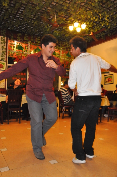 本网讯 11月26日晚6点,学生处处长植秀聪、学生处学生管理科科长刘军以及各学院辅导员代表与我校45名新疆学生在穗石商业中心清真饭馆共进晚餐,提前庆祝28日的伊斯兰教传统节日“古尔邦节”。期间,新疆学生与学生处领导及各学院辅导员亲切交谈,并主动邀请老师上台共舞,场面欢快而温馨。