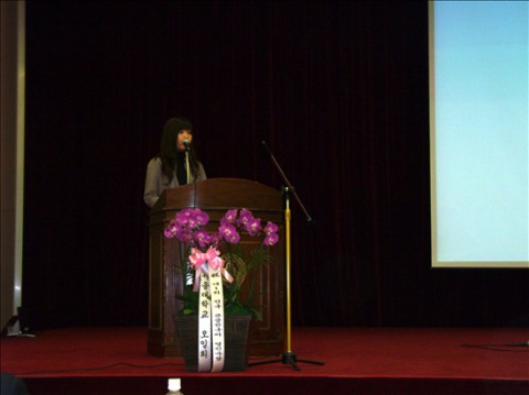 本网讯 11月13日,东语学院07级朝鲜语系李婷同学在韩国首尔参加了由世宗大学主办的“观光韩国语”演讲比赛。这次比赛的参与对象是居住在韩国的所有外国人,比赛内容是针对韩国或是本国的观光地,运用图片或是幻灯片进行演讲。
