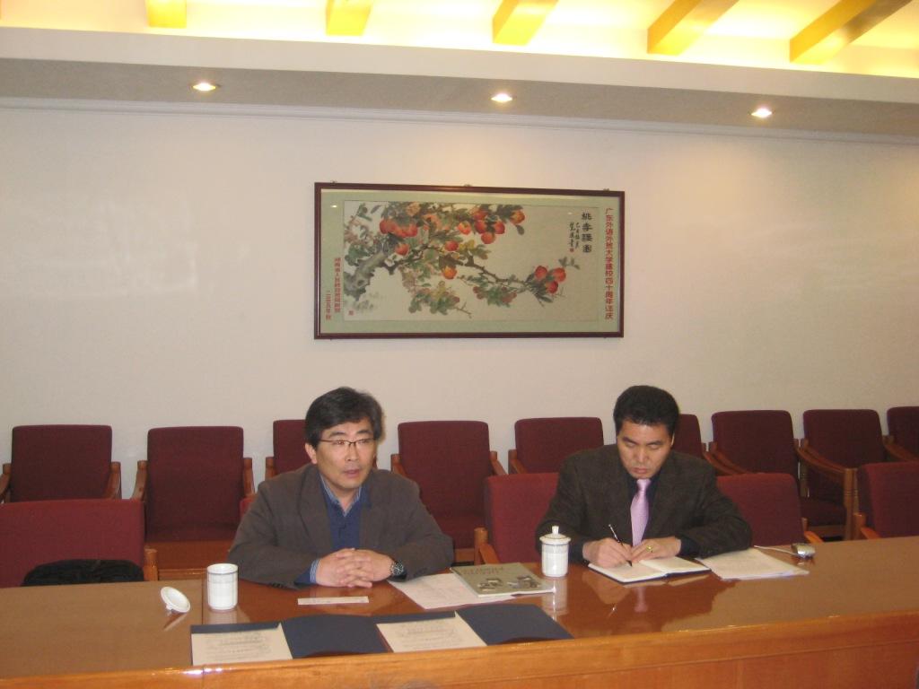 梁洁对黄胜俊一行的到来表示热烈欢迎。她简要介绍了一下两校目前合作的情况,并表示希望两校能在当前框架下开展更多实质性的合作项目。黄胜俊感谢我校的热情接待并表示很高兴来访广外,此次访问的目的是促成两校合作协议的尽快签订,并在现有的基础上,进一步扩大在学生、教职员工交流等领域的合作。黄胜俊介绍说,大真大学在哈尔滨、苏州都设有分校,并十分希望本校学生能够来广外学习。同时,他还建议广外和大真大学可在教职员工交流的合作上迈出一大步,即每两年派出教职员工代表团访问对方学校并学习对方的经验。