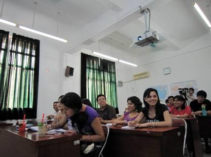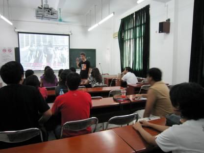 在《中国国情概况》课上,气氛融洽活跃,同学们踊跃地举手发言。老师是西语学院的研究生,课堂俨然成为了年轻人与年轻人之间轻松的交流和沟通的所在。在丰富的资料辅助下,来自秘鲁圣玛丽亚天主教大学孔子学院的同学们在欢笑声中了解了有关中国的各个方面的信息。