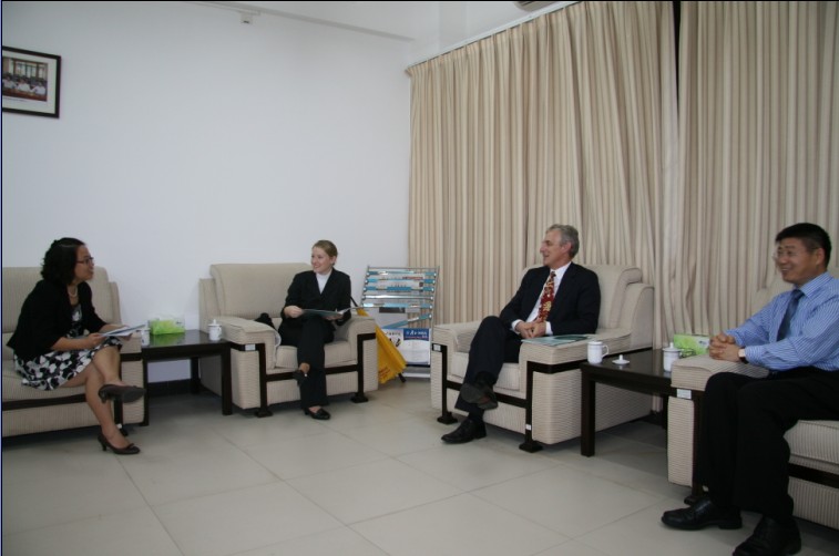 孙建军向客人们介绍了我校MBA教育项目的发展现状,并邀请美国俄亥俄州立大学Fisher商学院师生来广外MBA进行学术访问与交流。客人们对我校MBA教育项目国际化的定位和“培养融贯中西的国际化管理人才”的使命、“全球视野、全英教学”的双全理念表示高度赞赏。吴易明副主任向客人们介绍了我中心MBA项目的课程设置,David Smith表示双方的课程设计十分相似,对将来的合作有很大的帮助。双方还就未来合作办学、学生短期互访、师资交流与进修等事宜交换了意见。双方均表示将积极开展交流互访,加强校际沟通和合作,建立良好的国际合作关系。