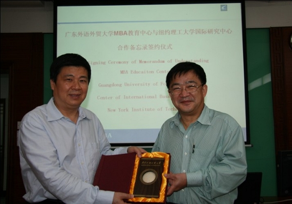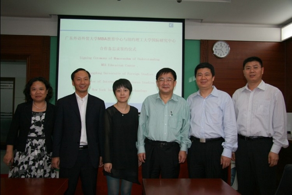 最后,孙建军根据学校授权代表我校MBA教育中心与刘贤方签订了《纽约理工大学国际研究中心与广东外语外贸大学MBA教育中心教育合作备忘录》。