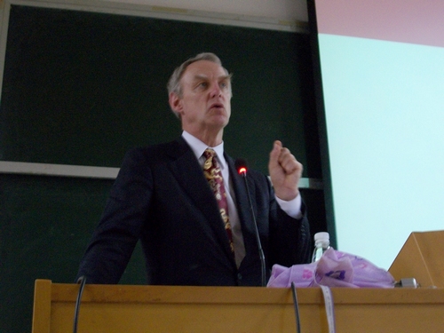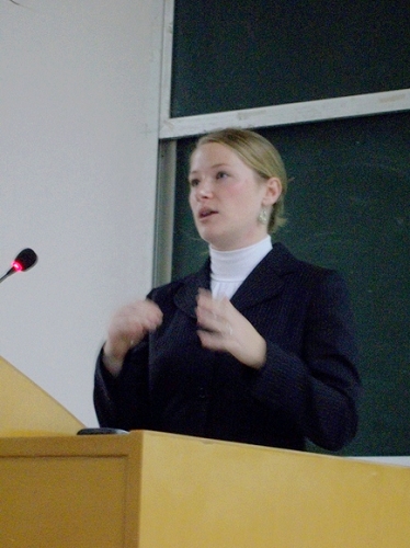 本网讯 11月11号下午,商英学院“09年职业导航”系列活动第一站——专题讲座“Hi! America 美国留学路”在二教217召开,来自美国俄亥俄州立大学的两位负责人用精彩演讲为同学们释疑解惑。商英学院副院长徐章宏应邀出席了本次讲座。
