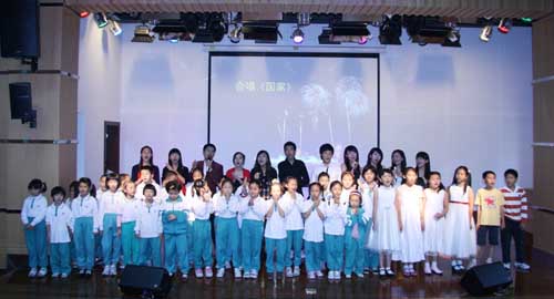 本网讯 笑脸洋溢青春,离别不舍情谊。11月6日下午,附校礼堂隆重举行实习汇报演出活动,为艺术学院15名06级学子在附校为期四周的实习划上了圆满的句号。附校校长刘志明、副校长王承明,广外艺术学院副院长李于昆、音乐系主任王蓓等领导出席。