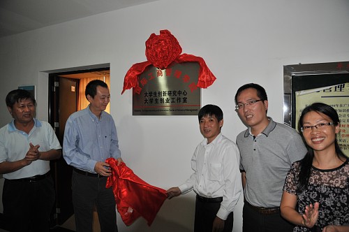 张昉、詹文都、何越晖、刘祎、董俊武、朱珍葶共同为管理学院大学生创新研究中心及大学生创业工作室揭牌。