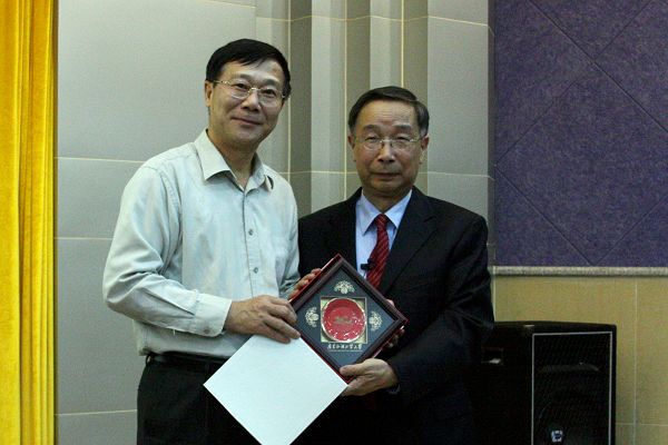 本网讯 10月28日晚,一场主题为“商务英语学科的性质与教学”的精彩讲座于北校财经学院水上演示厅开讲,主讲人为对外经济贸易大学教授黄震华。本次讲座为我校“著名教授论坛”第105讲,由校人事处主办、继教(公开)学院承办。校党委副书记陈建平、继教(公开)学院院长何勇斌、院党委书记庄典洲出席了讲座。陈建平代表学校向黄震华赠送纪念品,何勇斌则代表学院为其颁发客座教授聘书。讲座由继教(公开)学院副院长任跃忠主持。