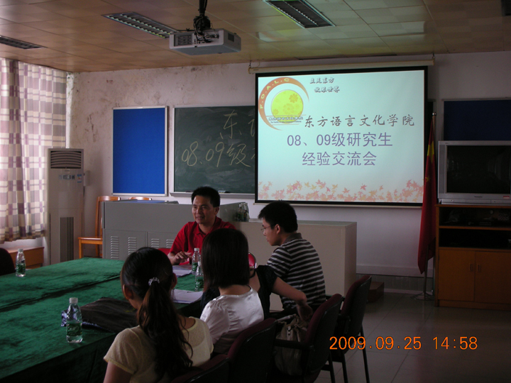 本网讯 9月26日下午,东语学院2008、09级研究生经验交流会在学院会议室如期进行。俗话说:“听君一席话,胜读十年书。”对于刚踏入研究生大门的东语09级研究生来说,新的学习环境,新的宿舍,新的老师同学,一切都是那么新鲜,让人跃跃欲试。但是另一方面,面临着研究方向、导师的选择,面临着从本科生到研究生的身份转换,不少同学都充满着疑惑,甚至可以说是有点不知所措。在东语学院党委书记林绍雄倡导、牵头下举办的师兄师姐经验交流会,可谓是雪中送炭,开得及时。