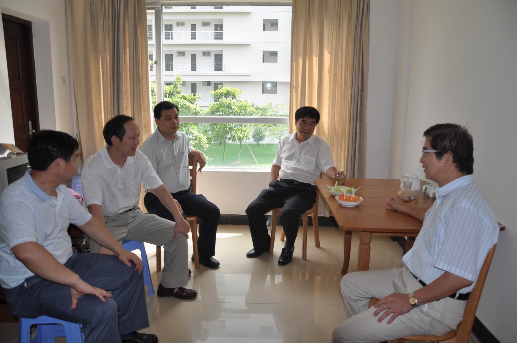 本网讯 中秋佳节到来之际,信息学院院长姜灵敏、院党委书记马庆华、副院长李心广、蒋盛益,于9月27日登门拜访了学院新引进的美籍教师雷允奇博士,送上了亲切的节日问候和祝福。
