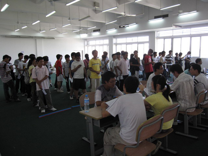 本网讯 9月26日9:30到17:30, 信息学院Quanta(量子)信息技术服务中心在南校教学楼D301举行了09年招新首轮面试,参加面试人数创下Quanta Center历年新高,信息学院团委书记汤程荣莅临现场指导。