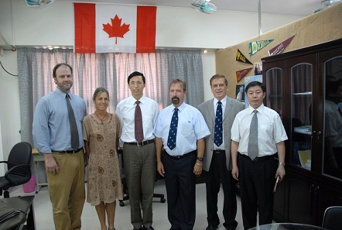 本网讯 9月22日,加拿大新斯科舍省教育官员Franck博士访问外校,对中加班项目进行为期一天的调研。上午10点,Franck在中加班校长Roger、加拿大派特森教育集团董事长白宁的陪同下,与外校副校长吴玉爱、国际部主管贺永忠进行了恳切友好的会谈。