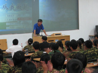 在F207、208两间大课室里,身穿军服的新生们精神抖擞、坐姿挺拔。当领导们走进课室时,课室里马上响起雷鸣般的掌声。