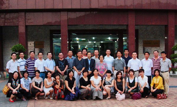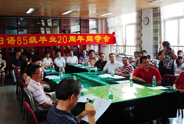 本网讯 9月19日,85级日语系30多位校友在毕业二十周年之际重回母校,举行同学会,共叙师生情。校党委副书记、校友总会常务副会长许国彬,党办校办副主任谢伟光,东语学院院长韦立新,党委书记林绍雄等出席了此次活动。活动由周云汉校友主持。