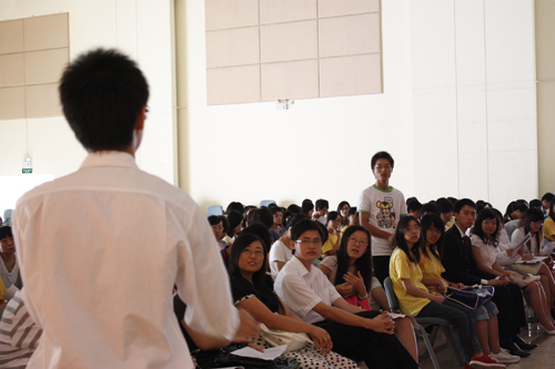 素质拓展营的第一项活动是往届团体负责人对于社团管理的专题经验介绍。广袤园武术协会的前任主席黄崇本介绍了武协的文化及以身作则为社团服务的经验,给了新上任的团体负责人们精神上的鼓励。外交学社前社长林穗宏以及魔术协会前任会长黄蓥,分别就团队建设和兴趣与社团的关系做了生动的经验介绍。职业生涯规划管理协会的前会长李儒乐做了关于项目管理为题的介绍。职业生涯规划管理协会南北校共有干事过百人,会员超过千人,管理这种大型社团一年的经验令李儒乐充满底气。据他介绍,职协完整的规章制度以及完善的流程管理,也是今年职协在繁忙的活动中保持有序的重要工具。