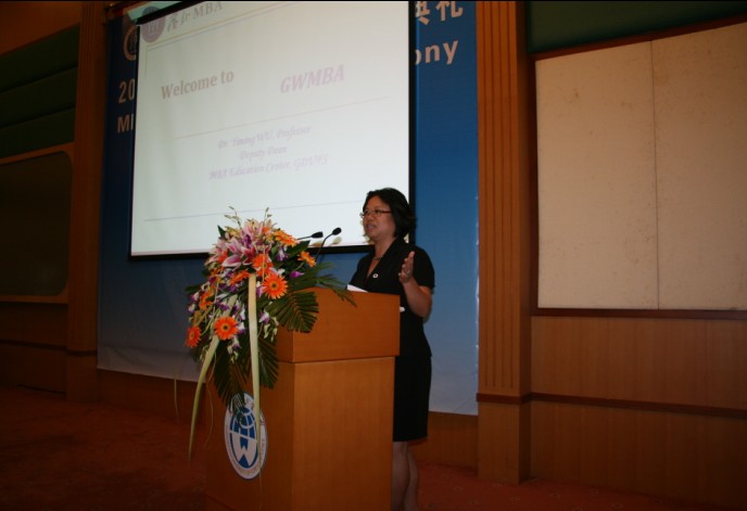 首先,石佑启代表学校党政领导和全校师生员工向进入广外MBA学习的全体新生表示热烈的欢迎和衷心的祝贺。他指出广外历经40多载风雨历程,已发展成为一所多学科、多语种、多层次的,培养复合型、应用型人才的涉外开放性重点大学。在国际交流合作方面,广外已与海内外近百所大学和学术文化机构建立了人才培养合作交流关系。他表示,面对当前新的产业革命和全球化的挑战,MBA教育中心应把握住学校认真落实科学发展观、全力打造“两院两基地” 的历史机遇,勇担培养融贯中西的国际化管理人才的使命。他坚信广外MBA教育中心必将引领MBA师生以昂扬的精神面貌积极迎接挑战。