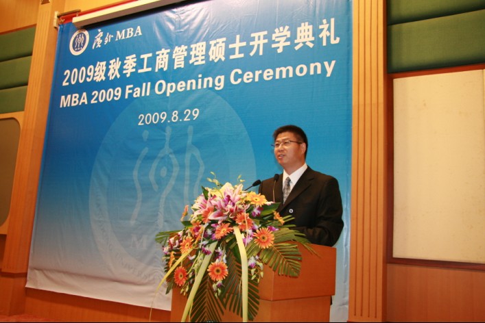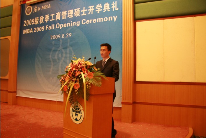 本网讯 8月29日上午,我校2009秋季MBA开学典礼在行政楼国际会议厅隆重举行。副校长石佑启,研究处处长曾用强,工商管理学院院长杨晓燕,MBA教育中心执行主任孙建军、副主任吴易明、主任助理马绍壮等出席典礼。MBA中心任课教师代表应邀出席。典礼由孙建军主持。