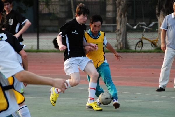 这支来自新西兰球队的队员平均年龄在15~18岁,较我方队员相比,他们更具有身形轻巧、行动敏捷的优势。在上半场比赛中,我校队员首进一球,而对方随后连追两球。后半场,我方主场优势明显减弱,对方连连发起强有力的攻击,我方球员死守严防,球门前险象环生,最终我校以3:6败于对手。