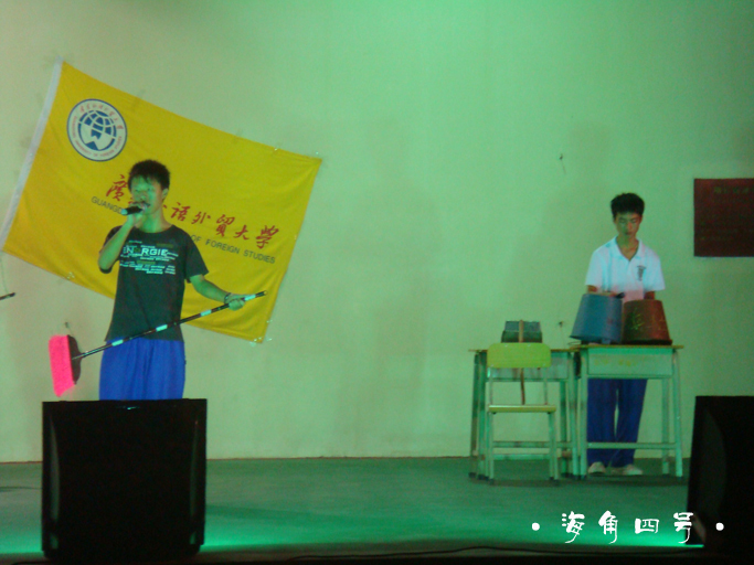 本网讯 十天航海历程,不知不觉,海角四号已载着郁南实验中学的同学来到了海角终点站。2009年7月23日晚上8时,广东外语外贸大学郁南实验中学英语夏令营闭营晚会在实验中学生活区大舞台正式开始。晚会上,有学校舞蹈队的友情演出,也有夏令营学生的精彩才艺展示,还有“海角四号”队员们的一展拳脚。晚会吸引了众多领导、老师、家长的莅临欣赏。