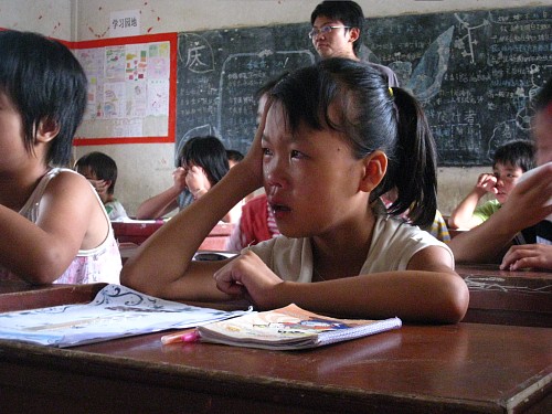 归期悄悄临近,懵懂的孩子们也开始敏感起来。离别前两天,四年级的教室里响起了一首《天使》,一直被认为是最调皮的学生们满脸的认真,满脸的真诚,他们说:“哥哥姐姐,你们都是天使。”稚嫩的声音触动了所有在场队员内心的最深处。谁说他们少不更事?也或许正是不懂事,才让心更透彻。队员轻轻的一句“你们也是天使,挥着隐形的翅膀”,就让全班同学泪流满面,最终,连老师们也无法自己,和学生们抱在一起,泣不成声。