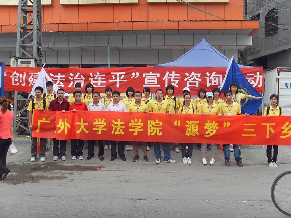 源梦三下乡服务队是来自法学院08级民商法班的一支队伍,他们用自己一年来所学的法律知识参与到社区普法活动中,回报社会,为当地的群众做力所能及的事情。他们的知识储备虽然不多,但他们坚持走在普法的最前线,不负法学学子之名。