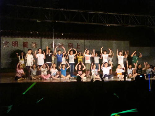 当晚的晚会可谓是对“爱心接龙”队教学成果的大检验,刚柔并济的太极表演,幽默风趣、反映下乡生活的小品,优美动听的英文歌合唱,励志动人的手语表演等精彩节目,都在当晚的观众中引起了强烈反响。而老师们献上的流行歌曲串烧和新潮动感的Nobody舞蹈则展现了当代大学生的风采,将整场晚会的气氛推向了高潮。晚会结束时全场学生的兔子舞也再度点燃起大家心中的激情。