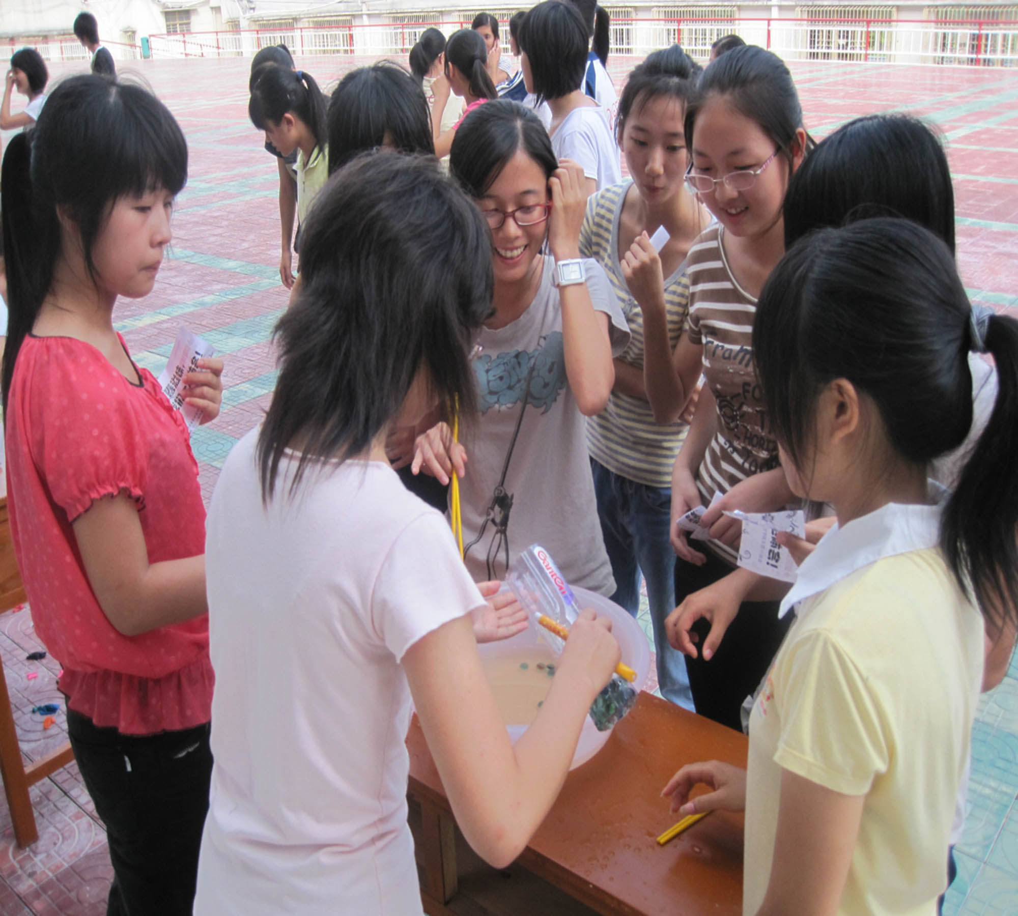 一群稚气未脱的大学师兄师姐,一群童心未泯的高一师弟师妹,在2009年7月23日这个美丽的午后,举行了一场难以忘怀的游园会。孩提时代的游戏,看似古老过时,却在这个午后显得分外的鲜明夺目。夹弹珠、南辕北辙、趣味接力……有趣的游戏,丰富的奖品,师生同乐,其乐融融。后天的即将分别,让人不由感伤,此刻是那般弥足珍贵,只愿能在脑海里深深刻下彼此嘴角上扬的模样,只愿能在心间永久烙印彼此依依不舍的眼眸。