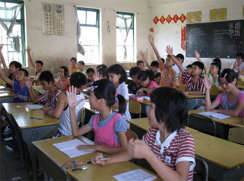学完30个词汇的发音后,就到了紧张激烈的提问环节了。老师擦掉了所有板书,随即提问刚刚学过的词汇,答对就有奖励。最开始学的简单的词汇,几乎全班学生都踊跃举手,且都准确地读出来了。由于大奖只有一个,到最后,老师只能使出“杀手锏”——短句子“我是中国人”和“今天天气很热”怎么念?这时候,举手的人寥寥无几。一些学生发音不标准,一些学生只会一句,最后,只有班长黄师敏流利的说出了两个句子,得到了最后的大奖——魔方。