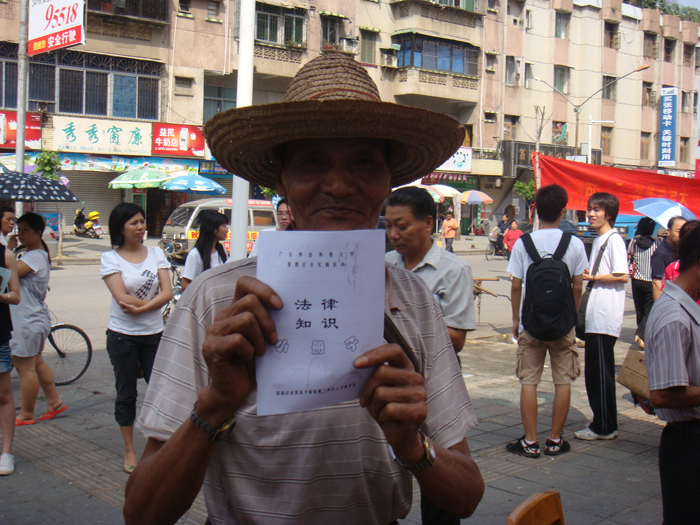 领到法律知识小手册的老伯