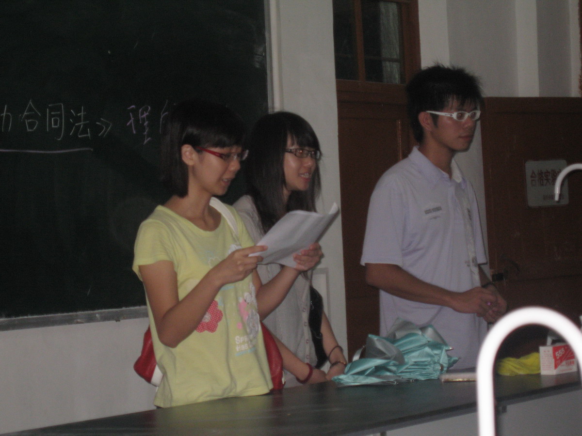 普法队员按照“重点条款、案例分析、法律问答、趣味法律”四个部分,精心准备了浅显易懂的资料小海报,将其作为“普法行动”重要的一环——法律知识角。7月17日晚,“普法行动”的重头戏,每晚一讲正式开始。晚自修前十分钟,四名普法队员分别在两个班内就今天的法律知识角内容作了互动式的讲解。当普法队员就法律知识角内容提问时,同学们几乎都异口同声地回答,课堂气氛十分热烈。
