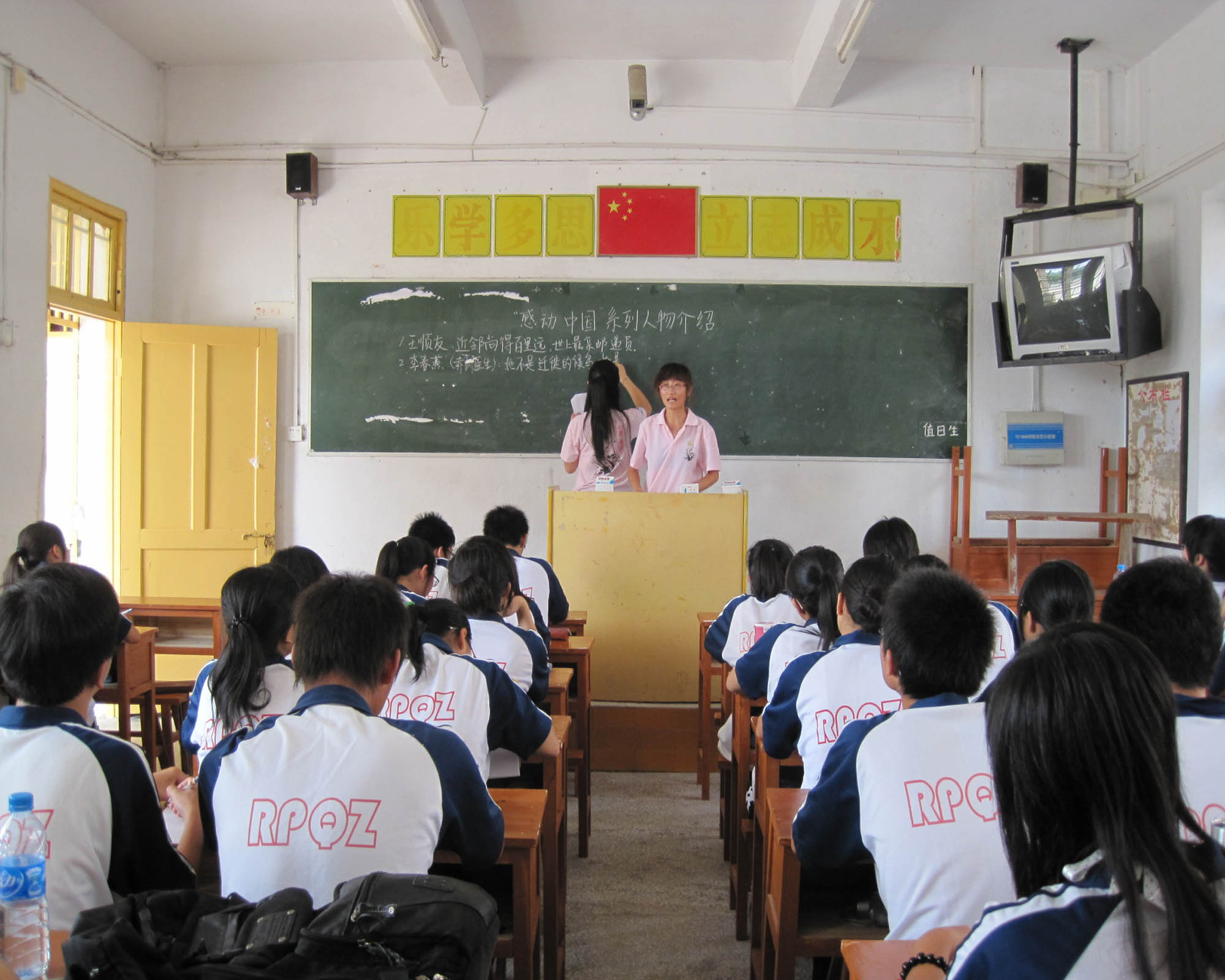 8点半第一节课——班会课正式开始,在华侨中学同学们热烈的掌声和满怀期盼的眼神中,义敎组的志愿者逐个走上期盼已久的讲台,简短的介绍任教的内容。秉着培养自信、展示自我的原则,义教组队员鼓励同学们积极竞选班干。为加强与同学们的交流,义敎组的志愿者走下讲台,走近同学,了解同学们参加此次活动的要求和期望。义敎课程顺利展开,交际英语、现代交际礼仪、国标舞等课程精彩纷呈,师生活动其乐融融。